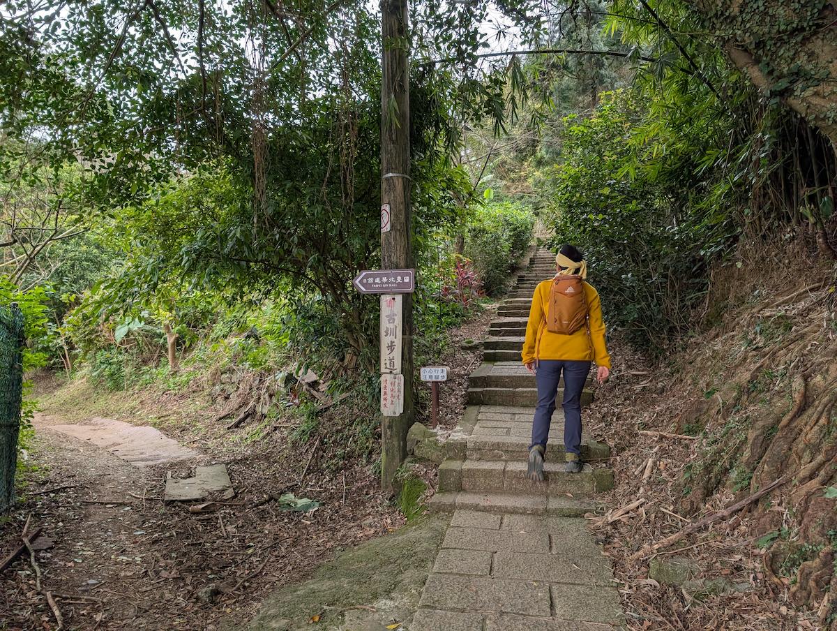 陽明山國家公園靠近故宮後山有一區有趣的路線,從別人菜園一路直上,竹林、坪頂古圳、大崎頭步道,靠近山頂處療癒桂花香大道(我說的)。