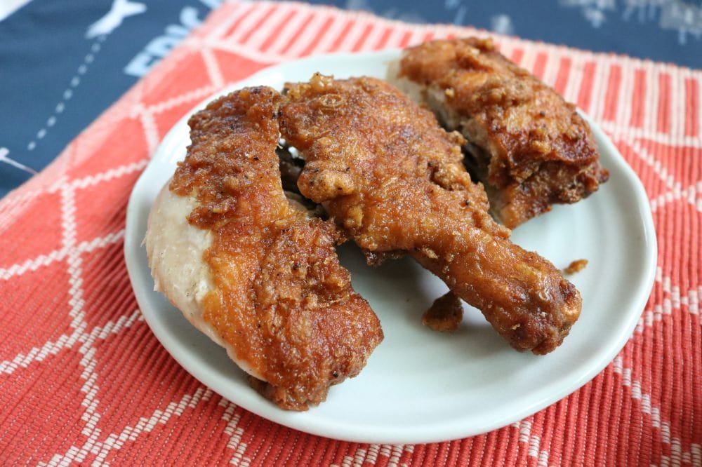 下圖:炸雞腿配上捷運西湖旁的「嚮家涼水鋪」就是好!