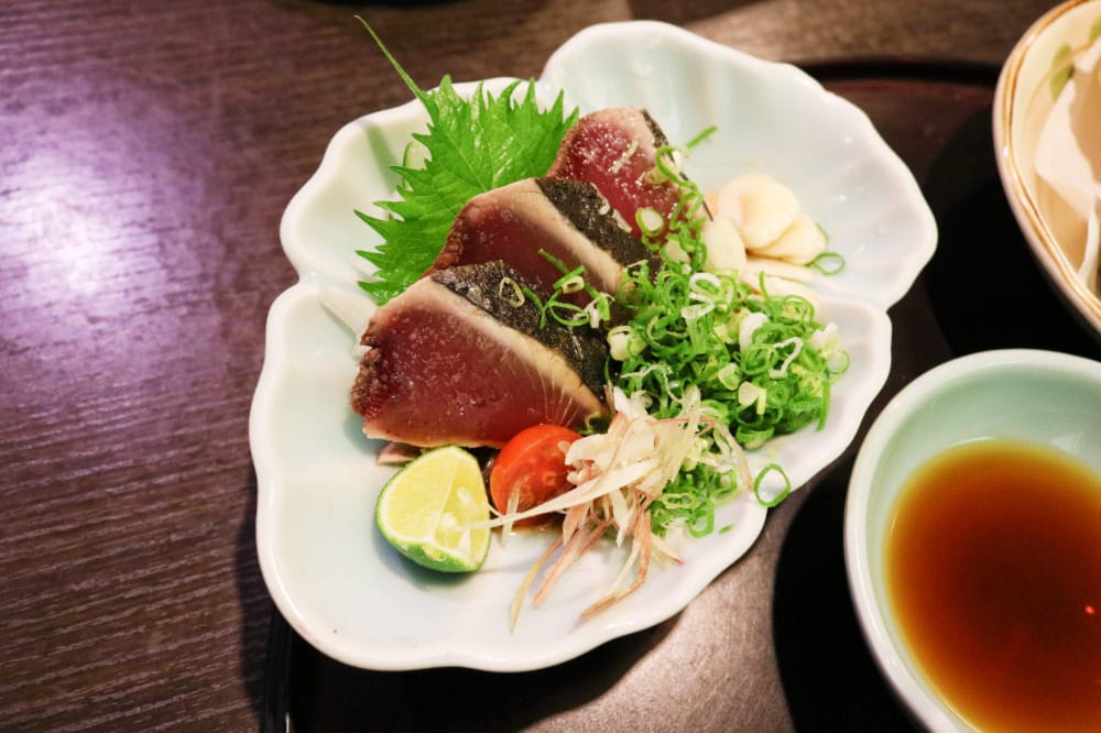結束日曜早市以後,意猶未盡得決定再找找在地鄉土料理試試,在帯屋町這兒最不缺的就是逛街、便利商店、餐館。不論你從Tabelog(日本專用美食網)、或是Google reivew,對日本四國來說都有些使不上力,因為來這兒打卡的人數本身就少(就讓我來替大家吃透透吧)。探頭探腦好一陣子後,決定試這一家看似高級其實商業午餐物超所值、坐滿日本人的「土佐ノ國 二十四万石 」。