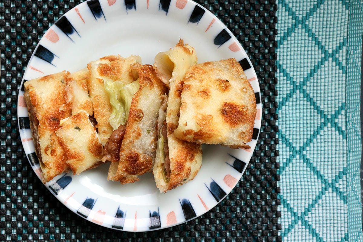用筷子夾起香噴噴的蛋餅,未咬先流口水,傳說中的半煎半炸,哎耶?好吃!對我來說這口感真的很像蔥油餅啊!能將蛋餅做得脆口卻不難咬,有點厲害!