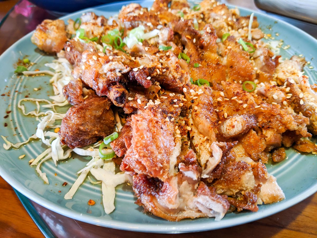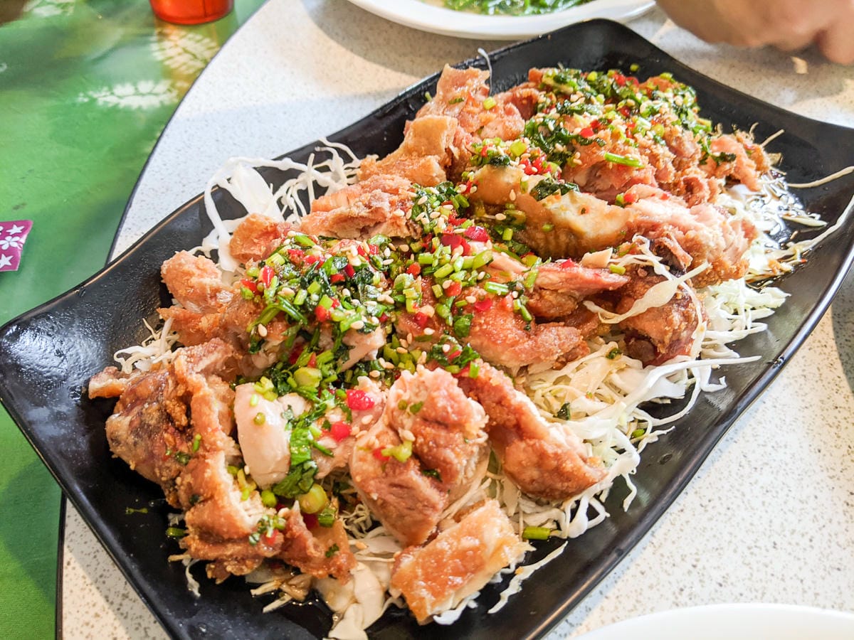 清境農場這一帶最多雲南料理,其中目前最得老蝦心的當然是「七彩屋」。刺蔥炸豆…