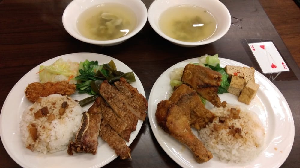 三菜一飯一主菜配上一湯,海帶蛋花湯熱清淡沒話說。熱呼呼的米飯淋上滷汁,滷汁的味道真的似曾相似,真的很像金仙便當的甜滷汁,冰糖醬油的香氣夠開胃。是說兩者最大差別在宬榕的不油。配菜乾爽湯汁不多、不污染米飯與炸物這點值得稱讚,米飯煮得很鬆帶一點咬勁,滷汁上頭的五花是刀工切過的丁,如果不愛肥肉可以請店家避開,以免你挑得辛苦。排骨油炸的方式屬於不帶厚麵衣,不同於池上飯包,除了骨邊稍微沒炸熟以外,整體肉質Q、新鮮,無腥。