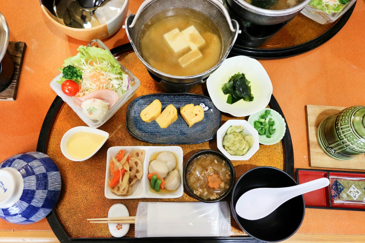 第一天的早餐:跟高檔溫泉旅館的會席料理盛宴差不多了吧(覺得震驚),每一道菜都出自民宿老闆娘之手,包括野菜茶碗蒸、佃煮小芋頭、涼拌蓮藕與紅蘿蔔、生菜沙拉、馬鈴薯泥、自製玉米沙拉醬、愛心玉子燒、味噌豆腐湯、醃漬小黃瓜、海苔、米飯以及熱茶,每次吃完早餐就飽到頭頂,是有沒有那麼誇張。整體味道非常清爽、色澤也很鮮豔開胃,不會太鹹的家常料理,果然只有民宿才吃得到。