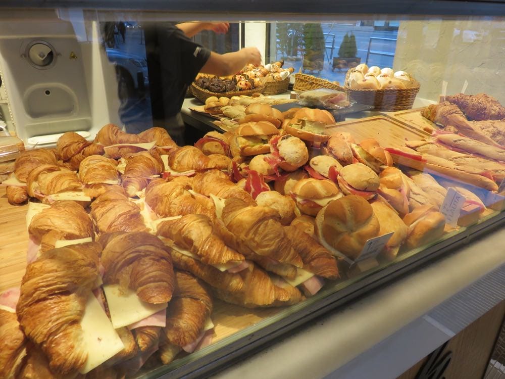 跟著人群排隊點餐,又到了西班牙語點菜時間XD,好在有圖有真相,不知道怎麼喊麵包名稱就用比的吧!別太妄想英文在麵包店可通,哪怕他是連鎖餐飲。總之,在西班牙肢體語言比英文管用多了。但我想教大家一個更實際的,尤其是對台灣人來說,麵包可不可以加熱?