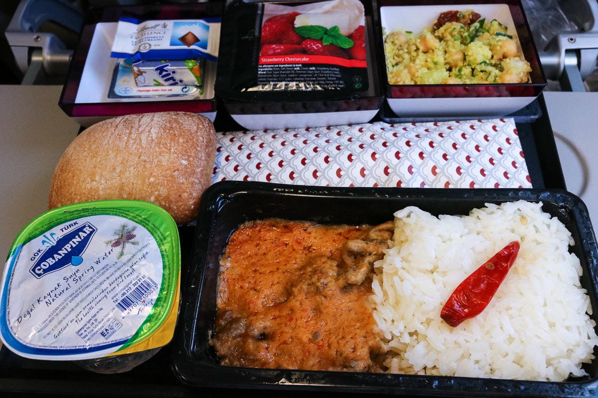 搭配黑胡椒雞肉米飯、蕎麥麵、麵包、芒果起司蛋糕。不得不說,從香港出發的飛機餐還是比杜哈出發來得好吃。如果你是第一次搭飛機,千萬不要對我們口中說的飛機餐有太多遐想,畢竟能通過重重安檢成為一套飛機餐是很不容易,別拿來與一般餐廳料理做評比呦。