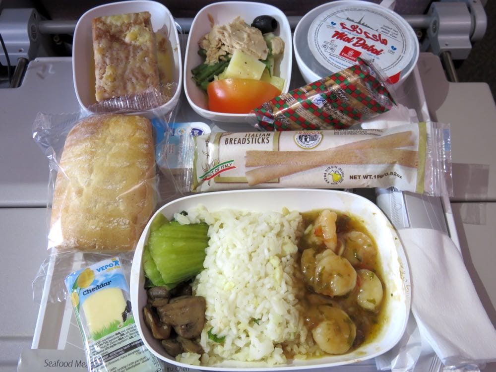 以飛西班牙巴塞隆納為例,第一段香港飛新加坡提供一餐、第二段新加坡飛巴塞隆納有兩道正餐、間隔一份三明治。有人說航空公司普遍提供的餐點都只算得上是給人吃。