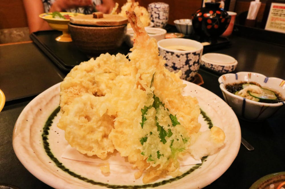 天婦羅定食 JPY1394含稅:天婦羅本人以外、還有生魚片、米飯、兩樣小菜、茶碗蒸、味噌湯。鮪魚刺身很新鮮、以天婦羅種類(紫蘇葉、茄子、南瓜、花枝、蓮藕、蝦、魚肉塊)來說非常豐盛。朋友覺得很好吃、尤其是一旁生魚片堪稱亮點,推薦兩人一份就好,或許宮古島的人兒是大胃王啊XD
